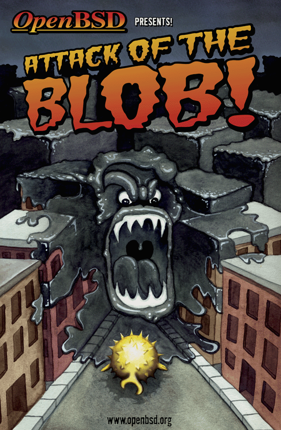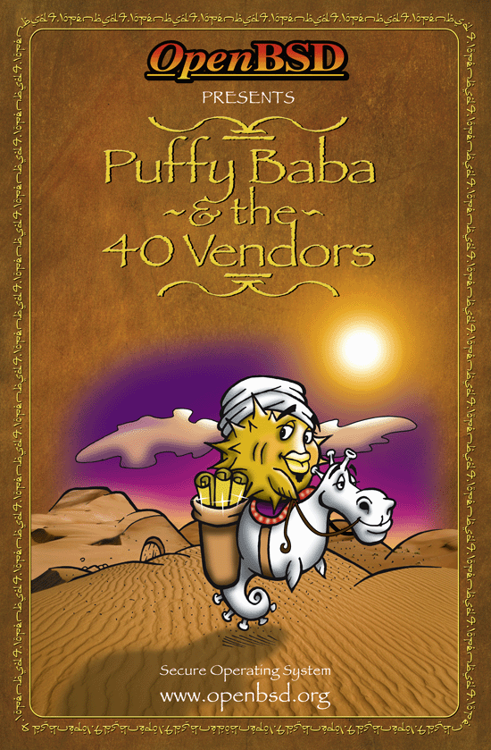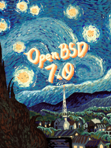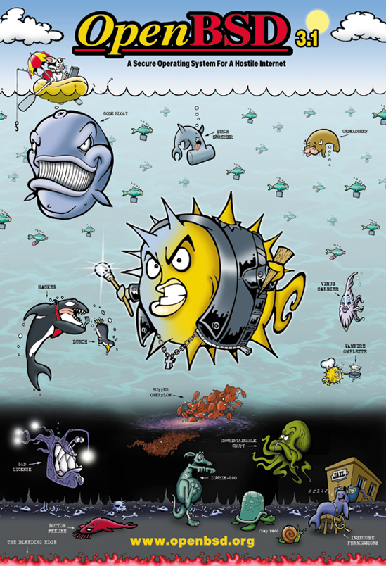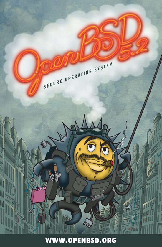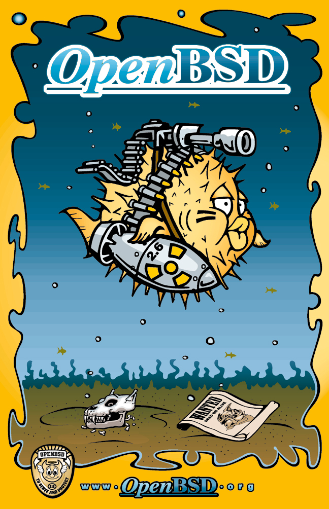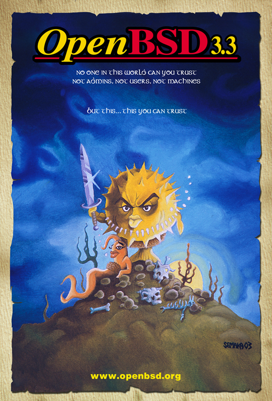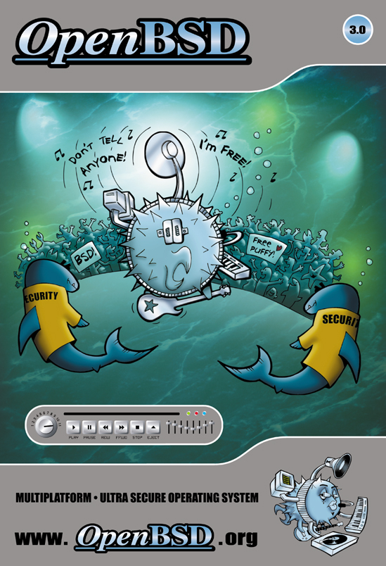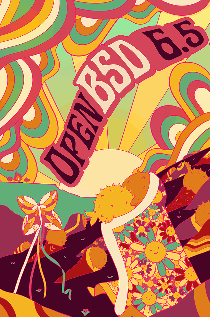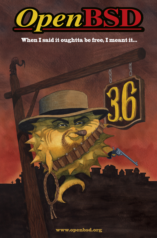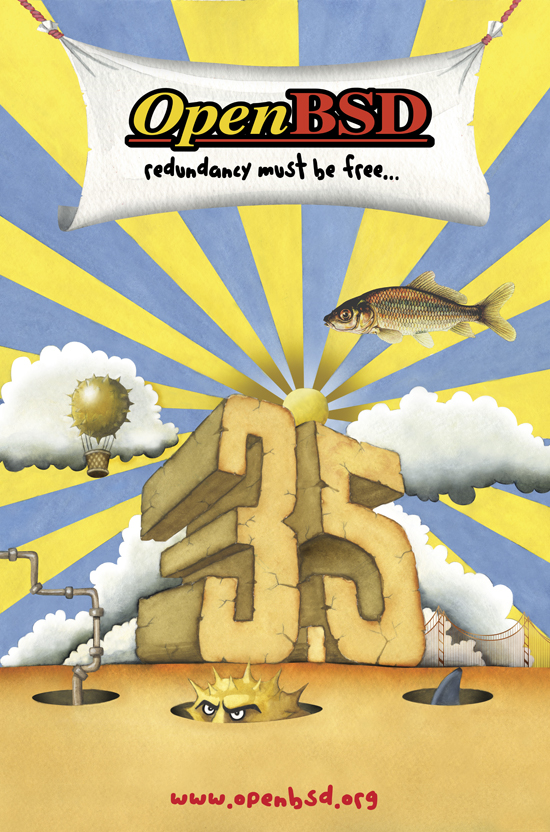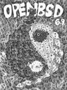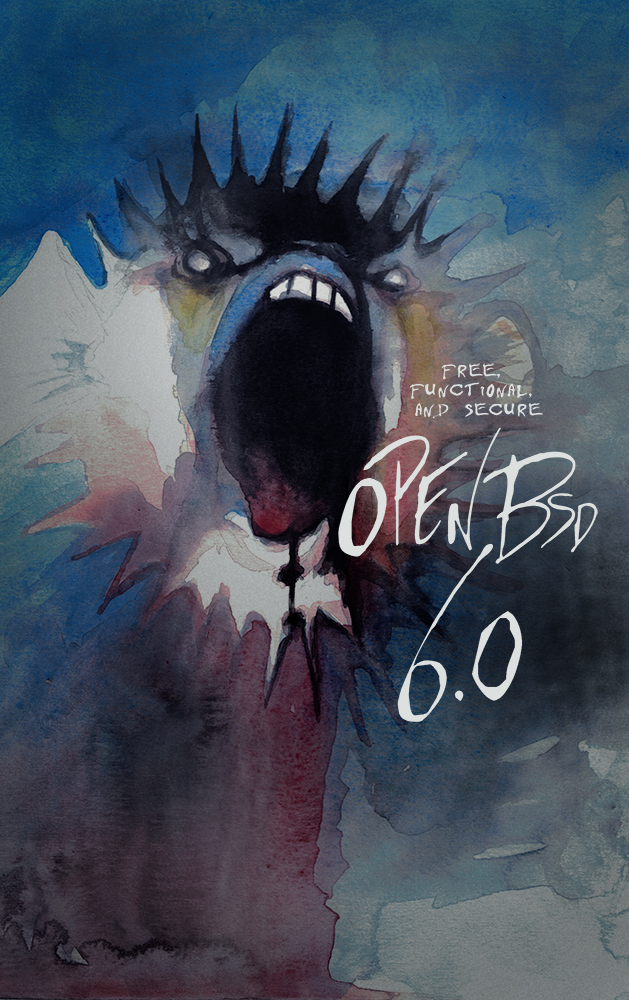 Every six months, around May 1st and Nov 1st, OpenBSD makes an official software release. To accompany this free software released on the internet, we make artwork and music. This artwork emblazoned CDs and posters up until version 6.0, after which we stopped producing product and only release software on the internet.