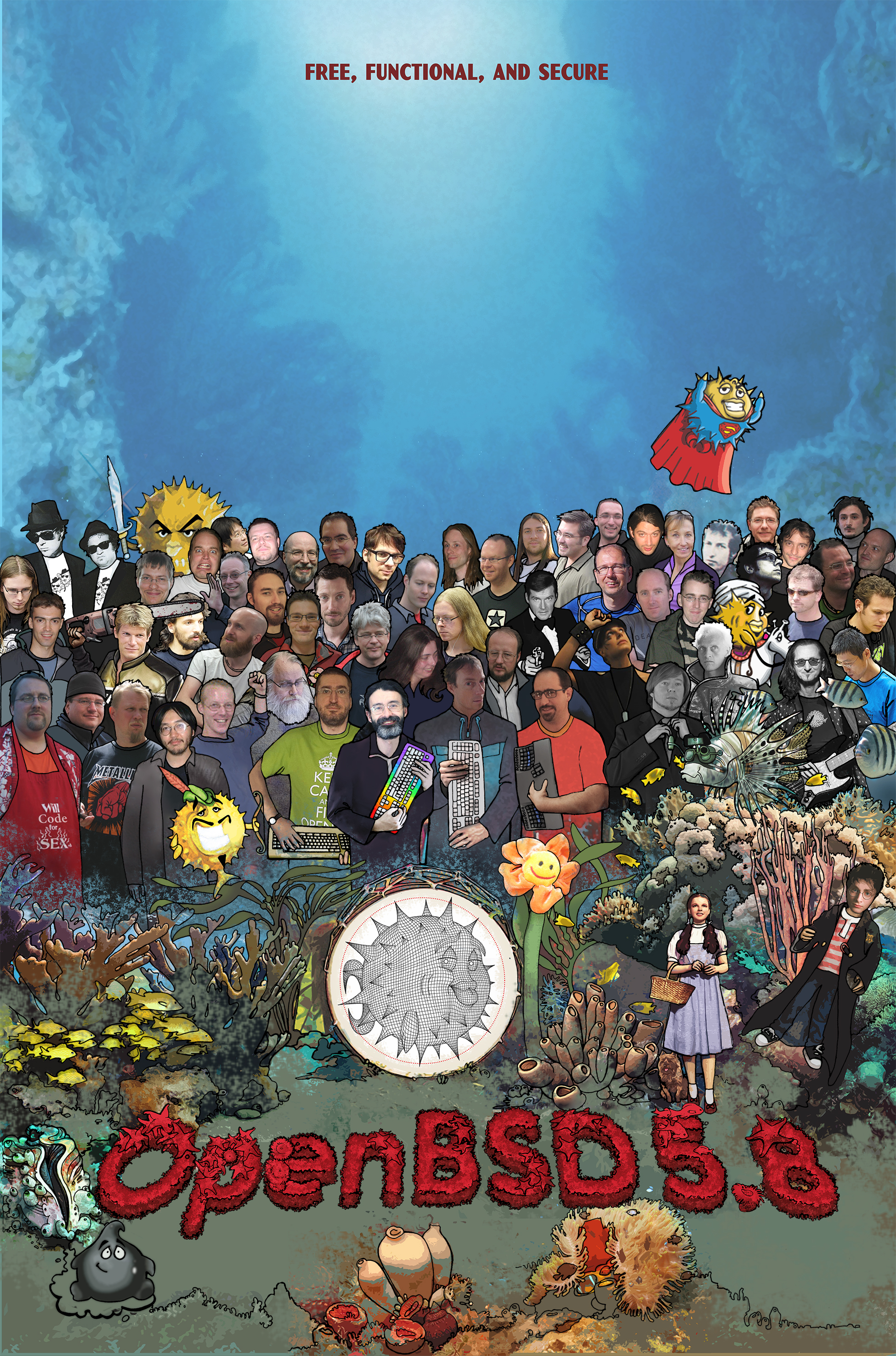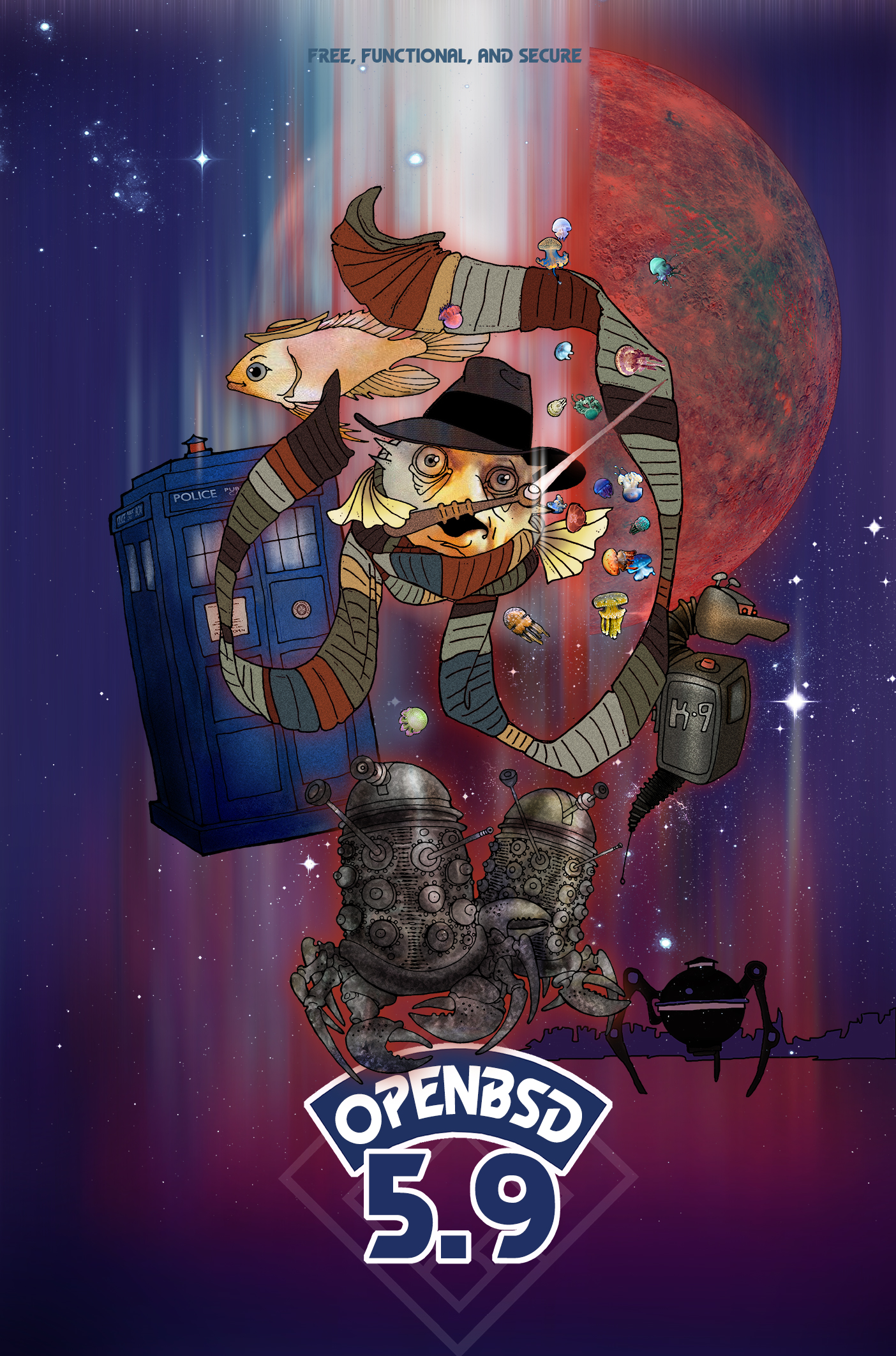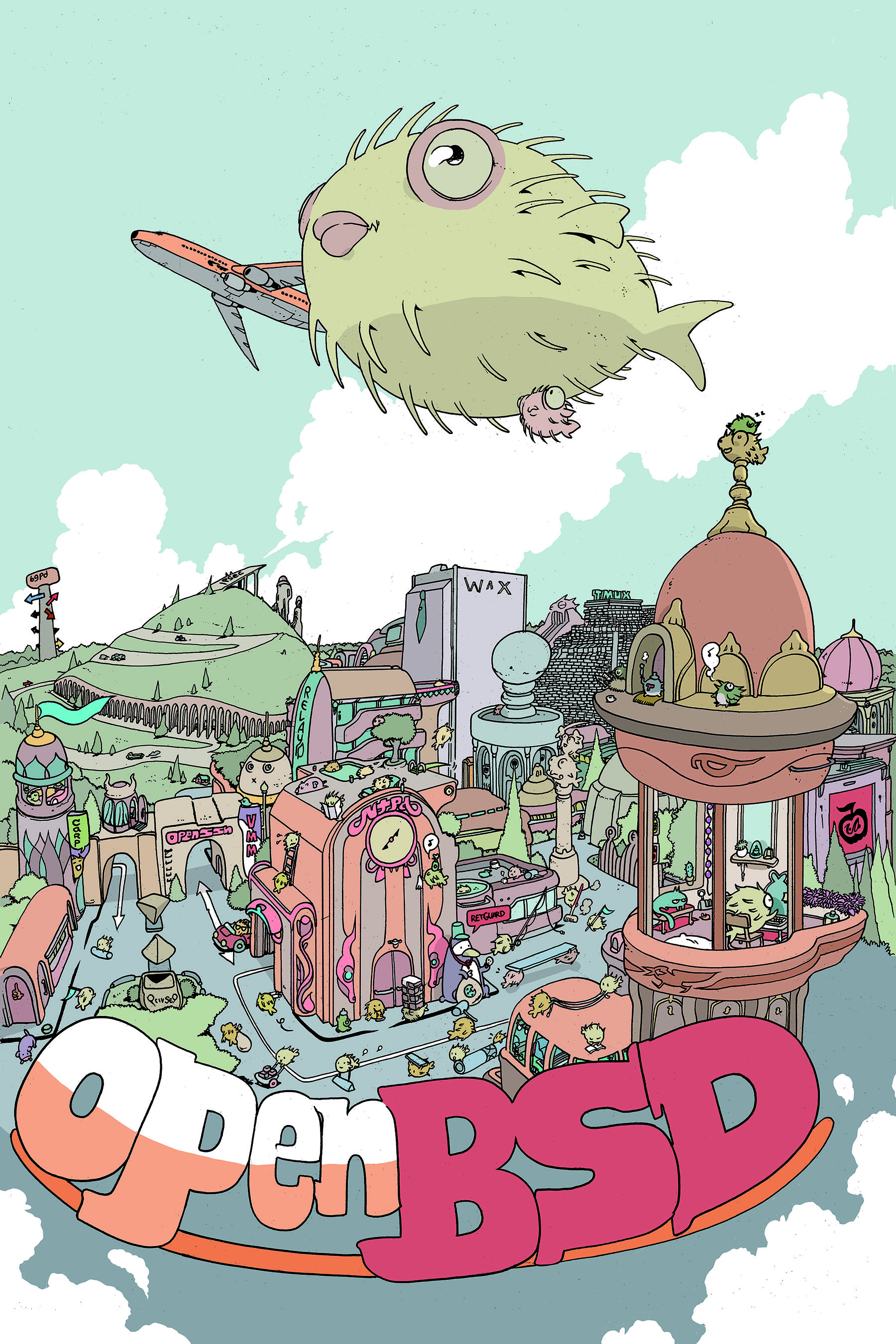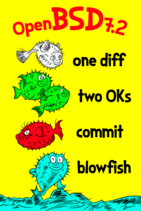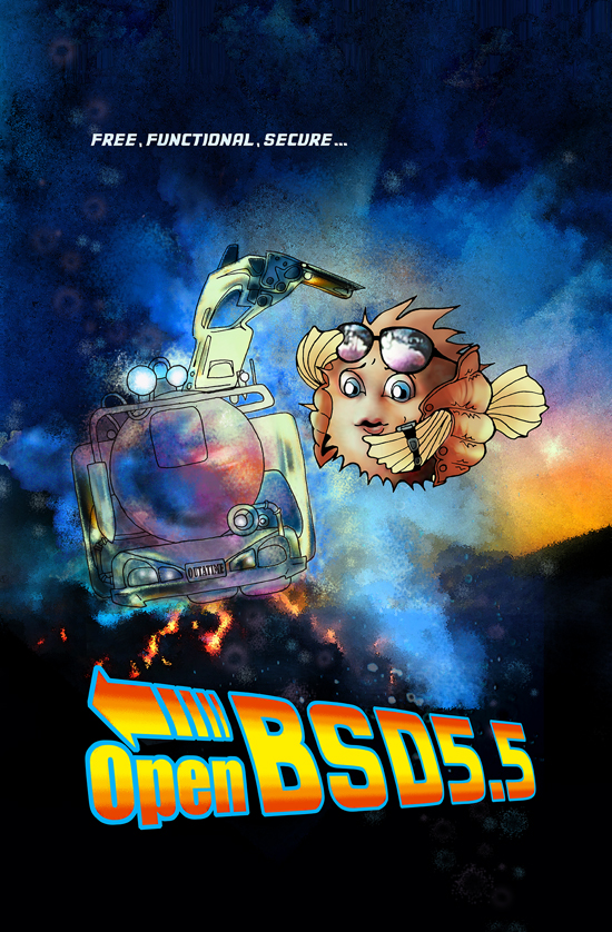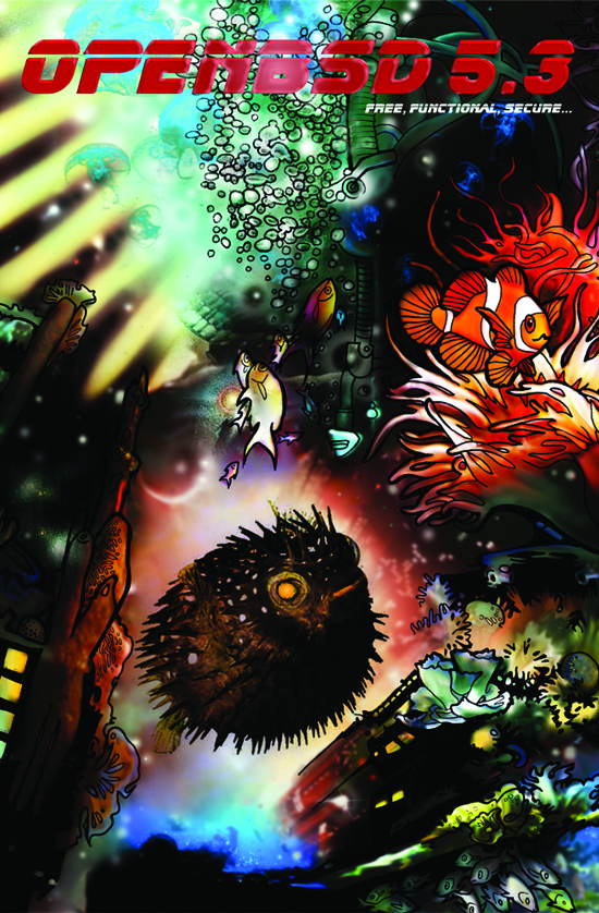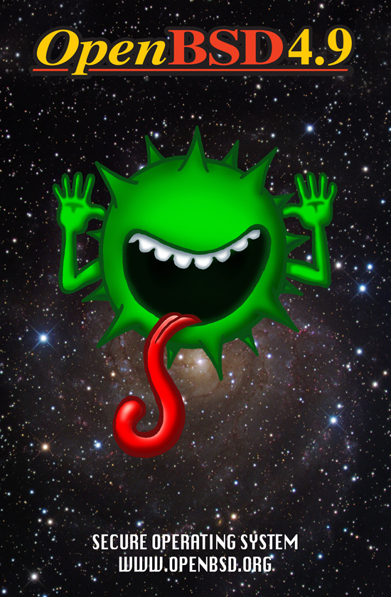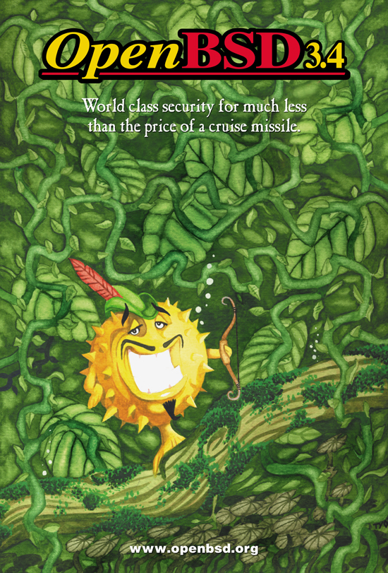 Every six months, around May 1st and Nov 1st, OpenBSD makes an official software release. To accompany this free software released on the internet, we make artwork and music. This artwork emblazoned CDs and posters up until version 6.0, after which we stopped producing product and only release software on the internet.